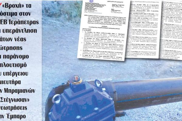 Με πρωτοσέλιδο της, η εφημερίδα “Πατρίς” του Ηρακλείου, αποκαλύπτει το αδιέξοδο στη διαχείριση των υδάτων στην Κρήτη. Ενώ η Αποκεντρωμένη Διοίκηση επιβάλλει πρόστιμα σε ΤΟΕΒ για παράνομες υπεραντλήσεις, οι ευθύνες βαραίνουν την πολιτεία, αφού οι καθυστερήσεις σε ζωτικά έργα και η διακοπή των χρηματοδοτήσεων τους, ανάγκασαν τους αγρότες σε λύσεις ανάγκης για να σώσουν την…
