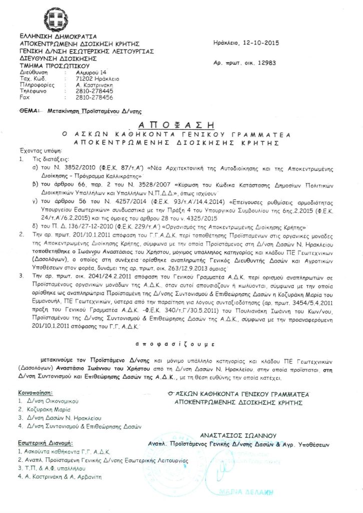 Για να αντιληφθείτε τη γενικότερη σήψη, στη Γενική Διεύθυνση Δασών Κρήτης προΐσταται άτομο που όρισε τον εαυτό του σε αυτή την θέση!