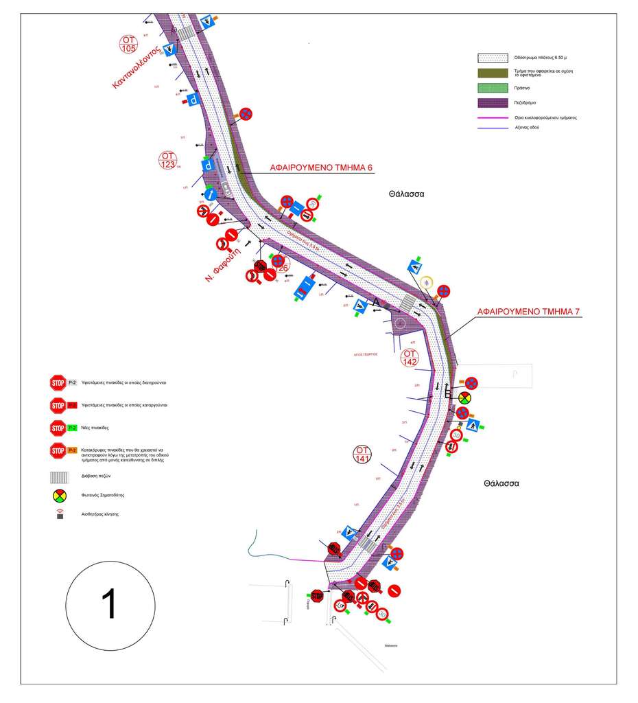 Σύμφωνα με τη μελέτη του δήμου, η πρόταση περιλαμβάνει αποξήλωση πεζοδρομίων, μείωση πλάτους ακόμα και κάτω από το ελάχιστο, ασφαλτόστρωση, βελτίωση στάθμευσης και κυκλοφορίας, καθώς και διαπλάτυνση του δρόμου. Φανάρια, γιατί το πλάτος δεν επαρκεί για διπλή κυκλοφορία. Ο δήμος υποστηρίζει ότι έτσι θα προκύψει νέος δημόσιος χώρος για ήπιες μετακινήσεις. - Αμφιλεγόμενη επαναφορά διπλής κυκλοφορίας