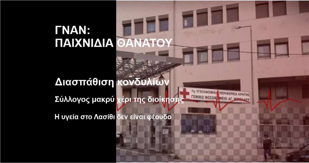 Η δημόσια υγεία στο Λασίθι είναι σε αποσύνθεση. Και όταν η ώρα της ανάγκης έρθει για τον καθένα μας, κανένα ρουσφέτι, κανένα καραβόσχοινο και κανένας βουλευτής δεν θα μπορεί να καλύψει το κενό μιας χαμένης ζωής.